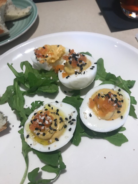 I had to update the Americana dinner with these excellent deviled eggs with salmon – really scrumptious.