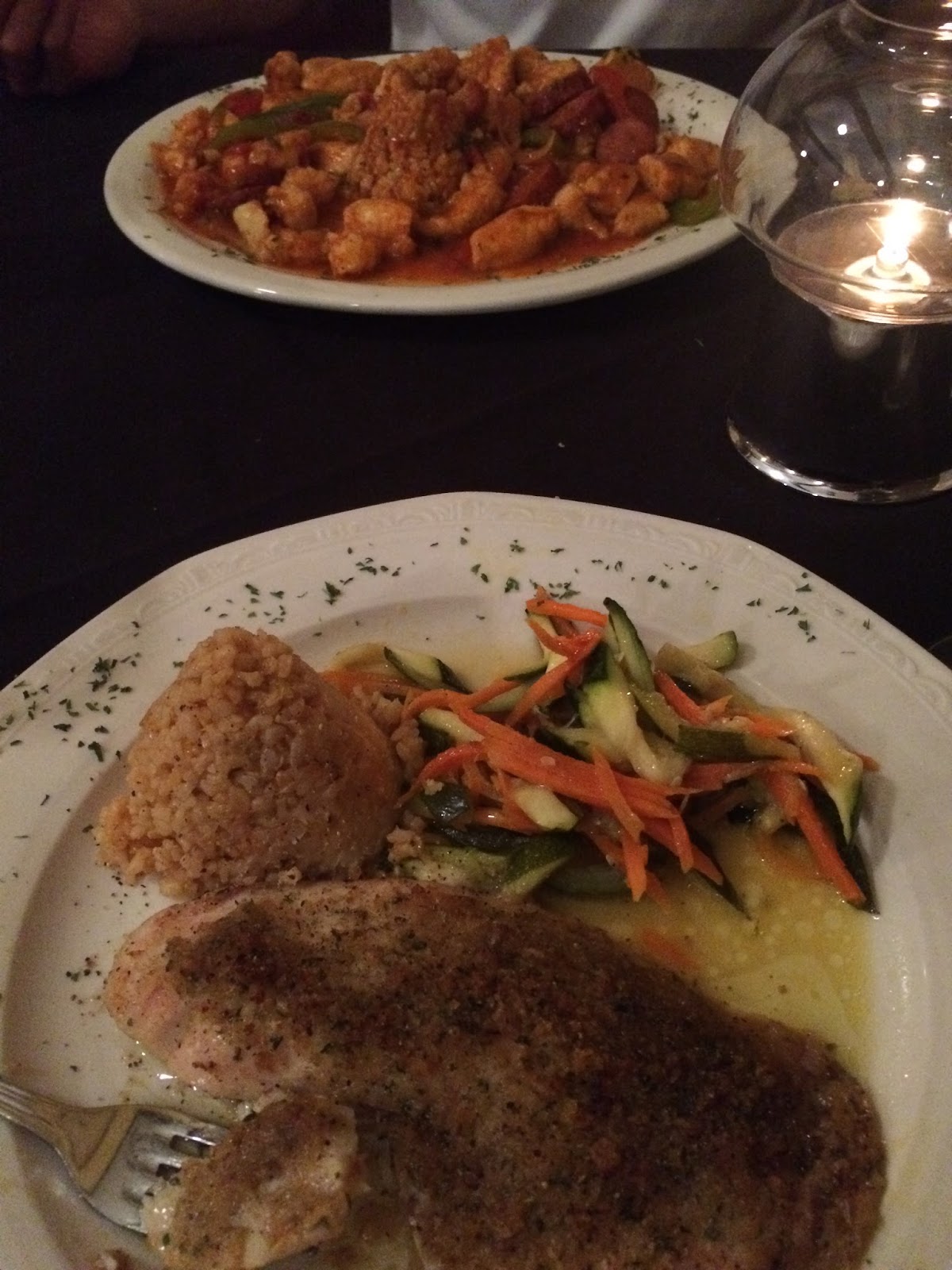 Tilapia and Chicken and Shrimp Jambalaya.