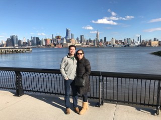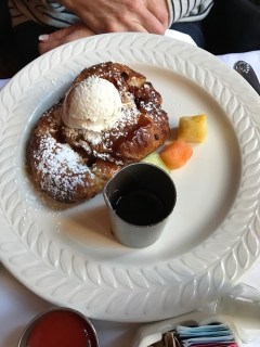 Decided on brunch in Hoboken with Connor and tried Amanda’s on Washington Street. Leslie’s croissant french toast with berry infused maple syrup was excellent. Connor had the eggs benedict and I really liked the unusual short rib hash (held its own against the usual corned beef hash) and we went out of there stuffed but walked it off by going down to the river. What a beautiful day and view.