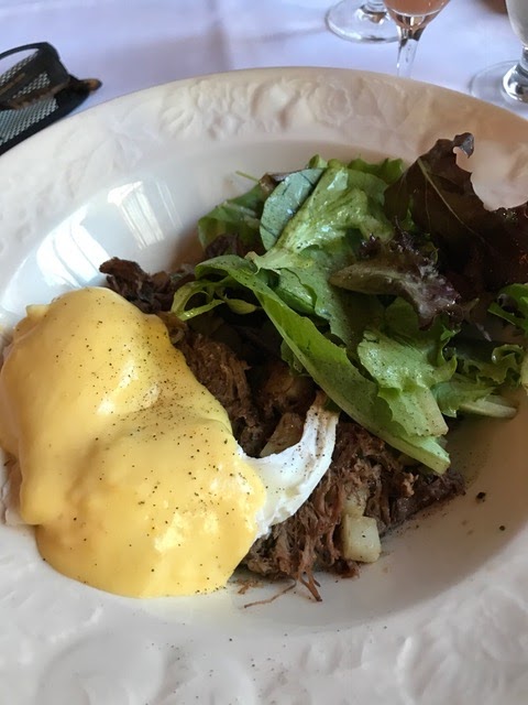 Decided on brunch in Hoboken with Connor and tried Amanda’s on Washington Street. Leslie’s croissant french toast with berry infused maple syrup was excellent. Connor had the eggs benedict and I really liked the unusual short rib hash (held its own against the usual corned beef hash) and we went out of there stuffed but walked it off by going down to the river. What a beautiful day and view.