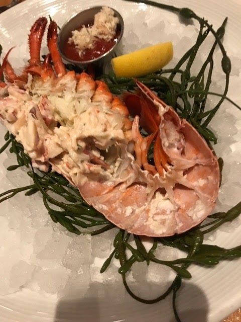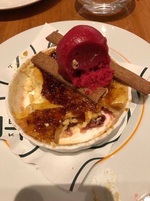 Saturday night with Leslie was at Jockey Hollow Bar and Kitchen -Oyster Bar in Morristown. We started with the half lobster stuffed with lobster salad. The next course was the burrata and then the Black Bass which was excellent. Leslie talked me into 🙂 getting the creme brûlée again and that was a great move. There were cranberries in the creme brûlée along with homemade raspberry ice cream which really worked.