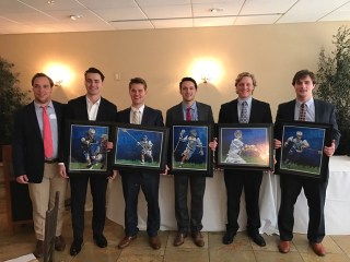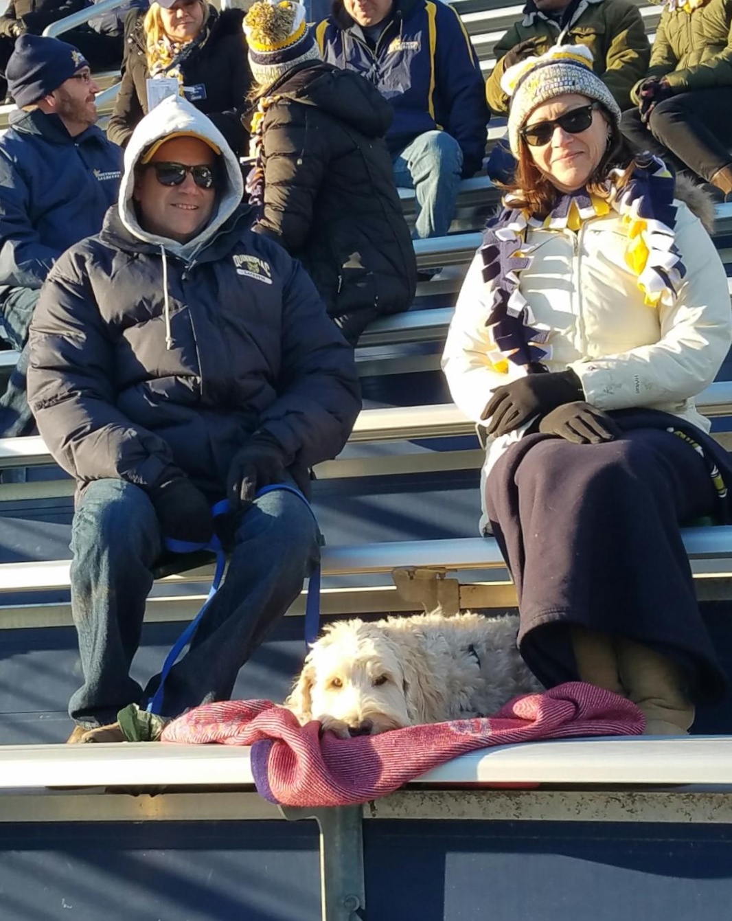 Really fun kick-off brunch with the QU lacrosse people today and honoring a super group of now graduated players. A nice get together after the brunch at Eli’s produced an excellent appetizer in the Philly cheesesteak egg roll! Nice call Rob D. Good luck Bobcats this year and count on some strong support from the Meth family! Little chilly at Yale to play Lafayette but Murphy loved being at games again!