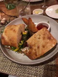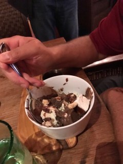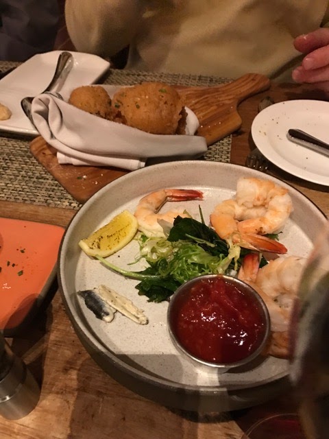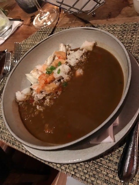 I turned a golf outing with my Basking Ridge buddies into, of course, a nice food experience down South in Savannah and Hilton Head. Started at Buffalo’s for a casual meal in Bob T.’s club for some nice fish sandwiches but the brunch was the star with shrimp and crab omelet. The next couple nights went to the Canoe Club which had a different but nice version of the gumbo. The crab beignets were unbelievably creamy and delicious. One ugly scene however when I had to fight Bob T. for a few spoonfulls of the chocolate ice cream desert at the Canoe Club. 🙂 😉