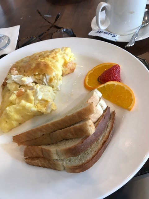 Bob saved the best for last when we eat at the Olde Pink House in Savannah. The crab bisque was smooth and rich. We chose the Habersham platter that had scallops, shrimp and grits (of, course!) and crab cakes. We need to go back when we have more time and explore the food of Savannah!
