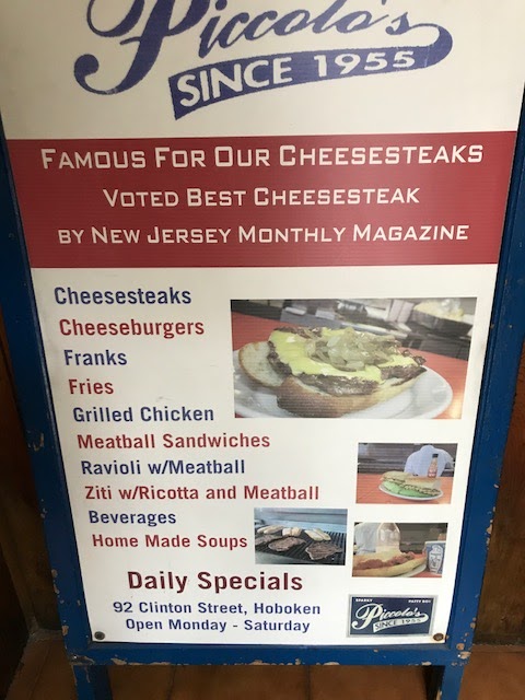 Great afternoon in Hoboken for a food walk from Connor’s apartment to the 14th street pier and then back again on the Labor Day weekend. We started with a cheesesteak from Piccolo’s (which is never open when I go by) and a real piece of good steak. This place was like going back to the 50’s with Sinatra playing in the speakers and photos galore on the walls.