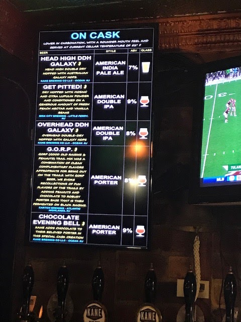 We then tried to walk off the meal but Connor suggested a really fun bar that was dog friendly. Made a note to bring Murphy the next time we went to Hoboken. Really interesting beer selections with cask beer (see menu below) and we ran into the Mahon’s and chatted until moving on.
