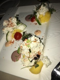 We had a great trip to Aruba last week and we were really happy with the food options on the island. The tough part is to pick which really good restaurants to go to. We started at Atardi which has tables on the beach in a really nice ambiance. I had the macadamia crusted grouper but the star was the crab appetizer which was awesome.
