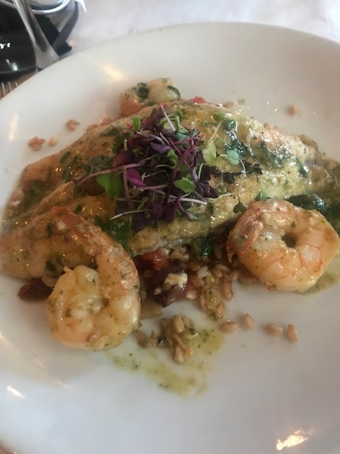 This Saturday I finally got a chance to go to Fin in Summit which has been hard to get into. Thanks to the Summer season and we got in and had a very good meal. We started with the lobster and scrimp sliders and the excellent spring rolls. Leslie had the salmon and I was thrilled to be able to try the Barrimundi with scrimp and bacon – Excellent. We finished off with a creme brule with fresh berries which Leslie polished off and embarrassed herself by licking the bowl. 🙂 🙂