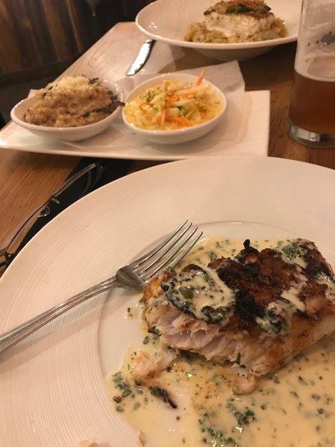 A trip back to Boulevard Seafood in Somerville reminded us of why we like that place a lot. The appetizer of crab cannelloni with avocado (see prior post for the picture) just is one of my favorite appetizers anywhere. The red snapper with the mushroom risotto and avocado cole slaw was a great pick. Leslie liked her really nice portion of halibut.