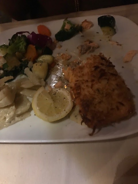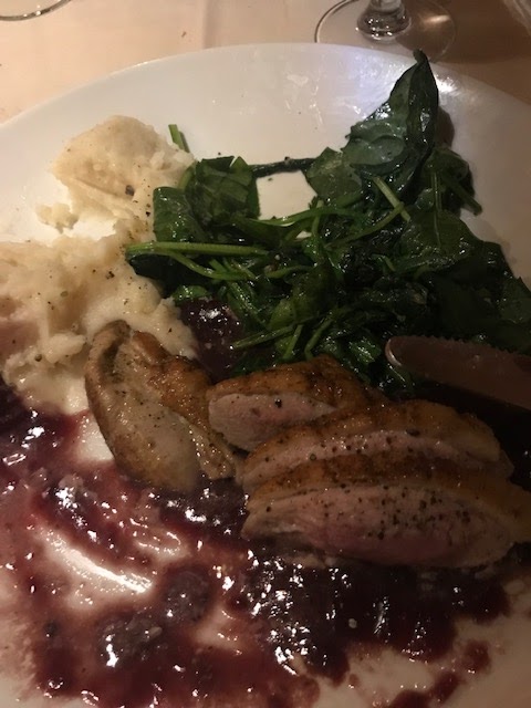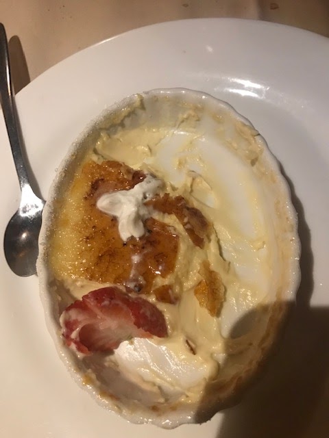 On Saturday, we tried the Corner Bistro in Randolph which was a pleasant surprise. The Burrata appetizer was good and I really like my duck. Leslie’s salmon crusted with coconut was a first for either of us and was a really nice combo. The deserts looked phenomenal and the home made creme brule with Bailey’s Bristol Creme was excellent.