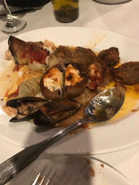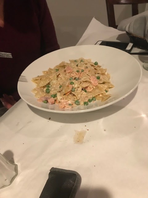 Friday night we tried Portofino’s in Morristown for the first time even though I pass by the restaurant every day going to work. We started with the Hot antipasto which was a great selection including shrimp, mushrooms, clams oreganato. Leslie’s bowtie pasta with salmon was very good although my flounder was slightly overcooked so stick with the Italian dishes.