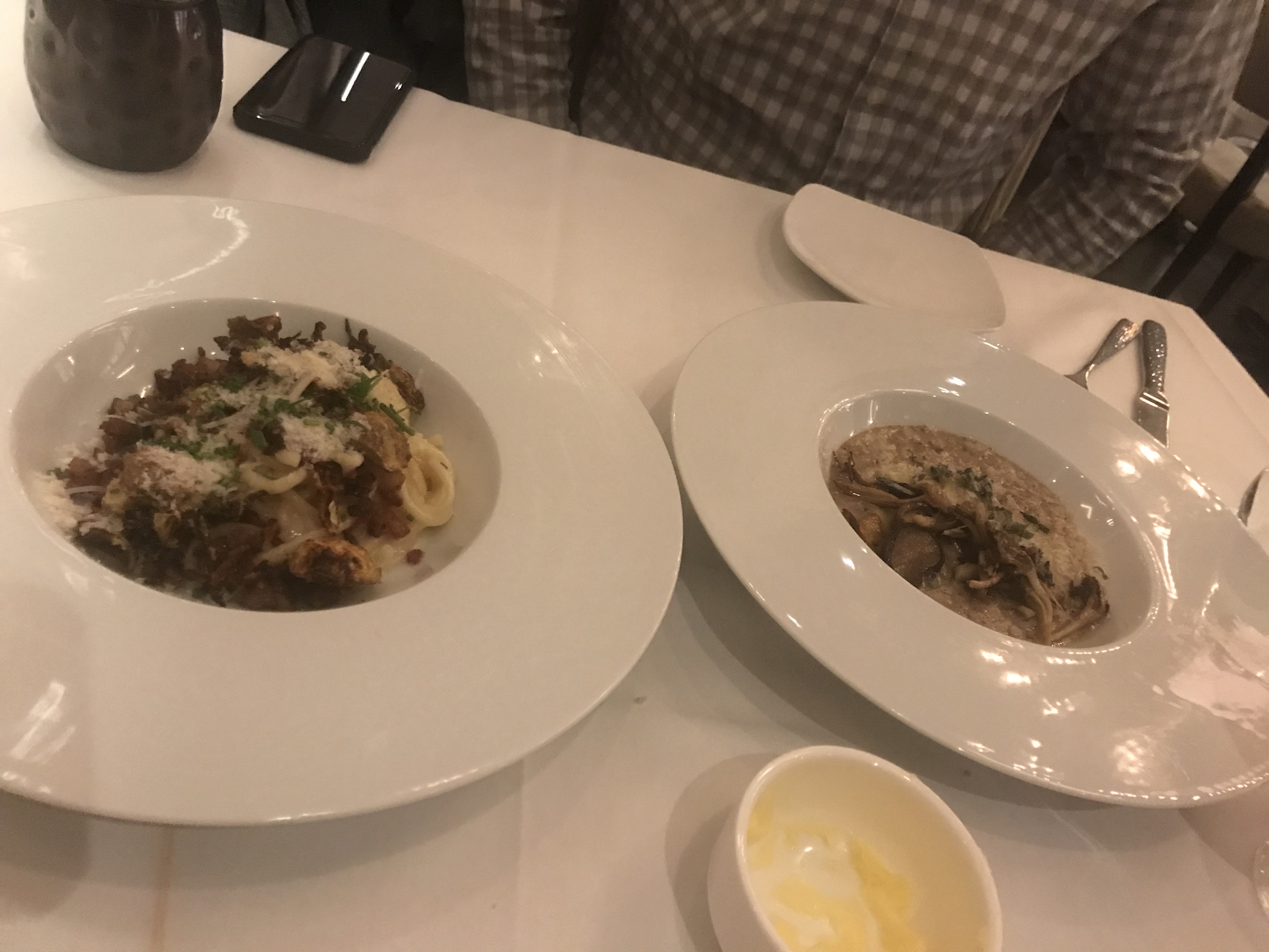 All these years driving past the Grand Cafe without going in and I finally decided to try the Grand Cafe in Morristown. It looks expensive but if you are smart it’s really not that expensive. Leslie and I really enjoyed the appetizers of the seafood crepe and Panko crusty shrimp scampi. My Pan Seared Bronzini was very well done.