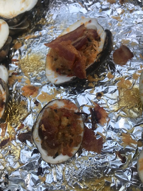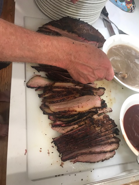 Thanks to the French’s and the Diehl’s we had a wonderful weekend of food, drink, hiking, swimming, cornhole, badminton and general merriment down near Towson, MD. Food-wise, we eat-in but the food was excellent! What stood out was Greg’s brisket (a 24 hour event), crab cakes with huge chunks of crab (It’s Maryland, of course) and the clams casino was blended perfectly. In addition Leslie’s cauliflower Mac and cheese got rave reviews. Can’t wait until next year!