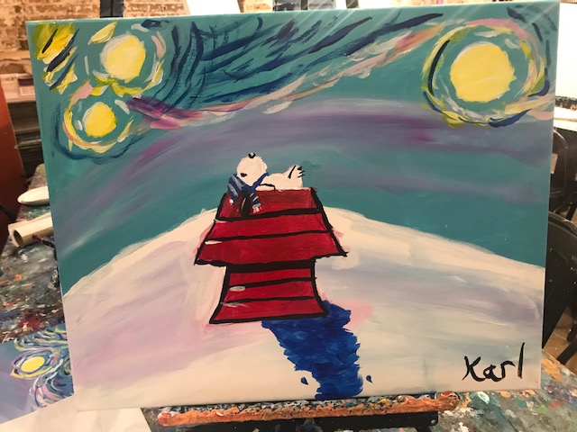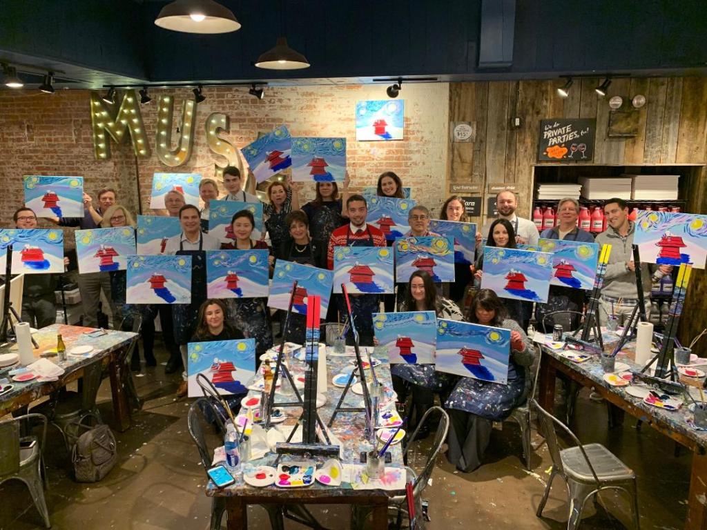 I was skeptical when the party started at with a painting class in Muse down in Tribeca especially since my painting ability is basically nil. The night turned out pretty good including our holiday meal at Tutto Il Giorno in Tribeca. I had the Bronzino poached in a tomato, celery and olive oil broth, spinach which was very good. Below is my painting and some photos of our food and the event.