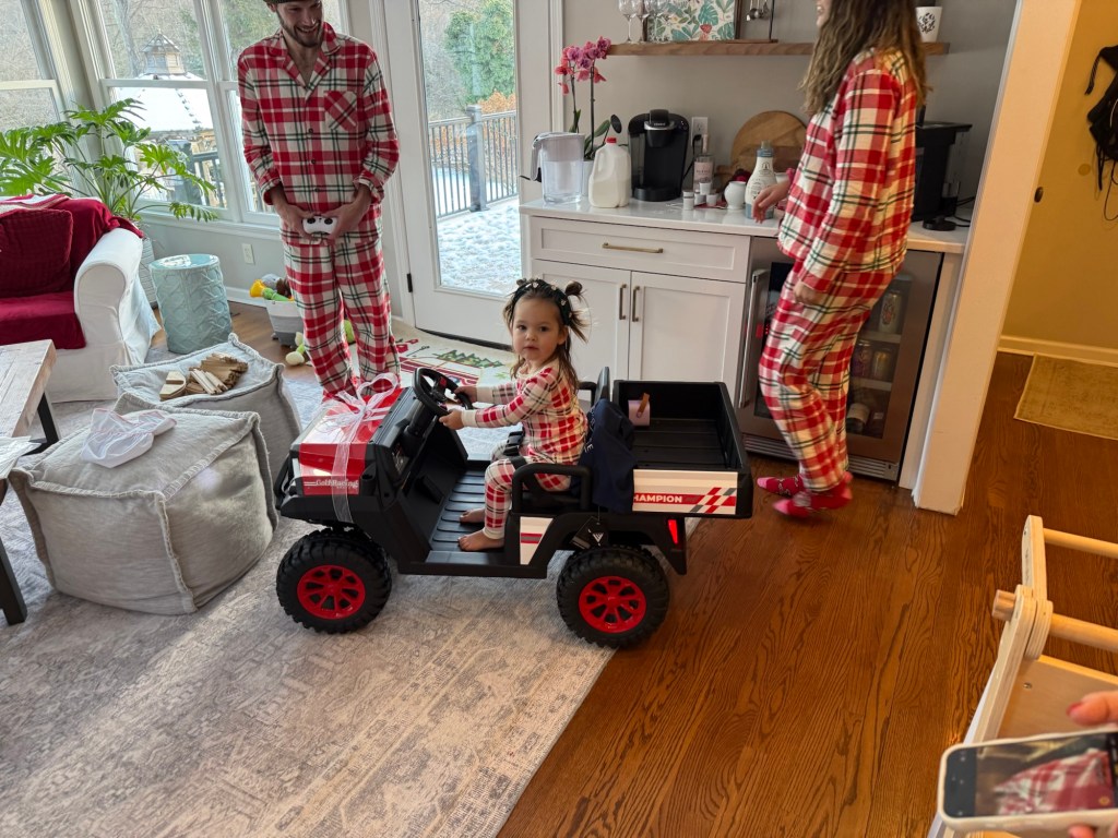 Andi’s second Christmas was amazing. The world’s kids gifts supply took a major hit but she loves them all! excited to take her buddy jack for a ride in her golf cart.